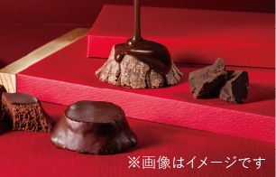 落ち着いた赤を基調に、ブラウンやベージュなどおいしそうな色をアクセントにした、おしゃれなパッケージ。バレンタインの贈り物にもぴったりです。