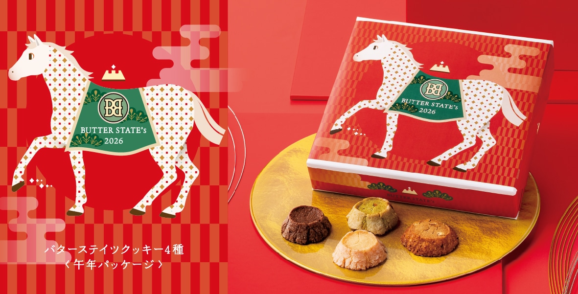 バター合衆国「BUTTER STATE's(バターステイツ)」は菓子職人達自慢の一品が集うバタースイーツブランドです。溢れるバターの美味しさをまるごと味わっていただきたくて独自の「バターなだれとろけ製法」も開拓し、ひたすら腕を振るいました。紋章に冠したバター色の王冠は、磨きあげたおいしさの証。