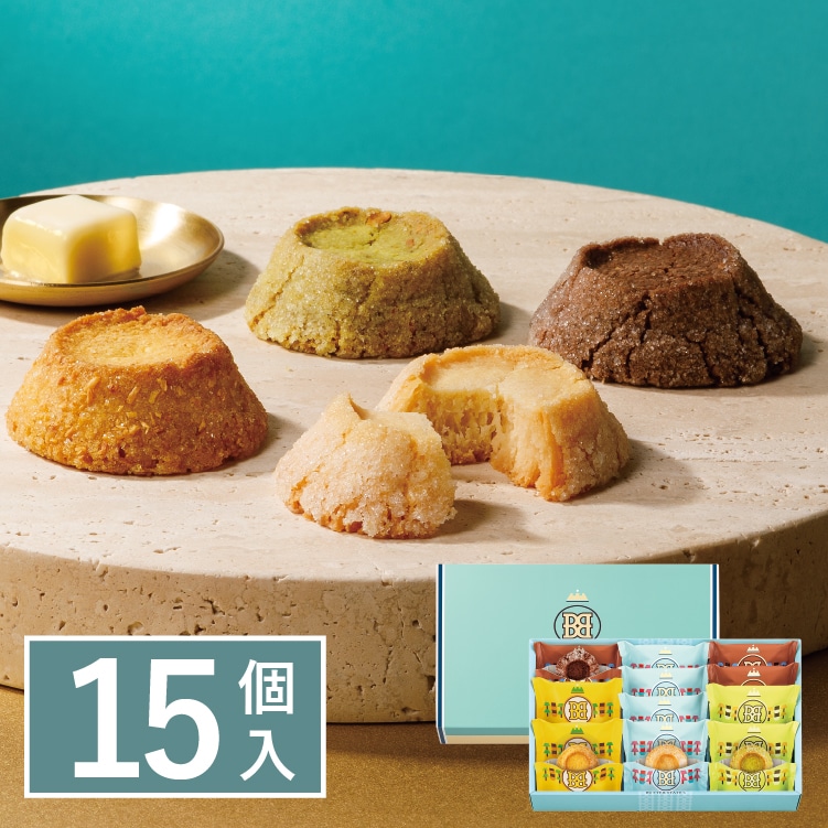 情熱こめて厳選配合したトリプルブレンドバターをたっぷり練り込み、窯の熱でバターが溢れとろける「バターなだれとろけ製法」で香ばしく焼き上げました。バタースイーツ専門店が、バター好きにお届けしたい、究極のバターリッチクッキーを4味集めた贅沢な詰合せです。