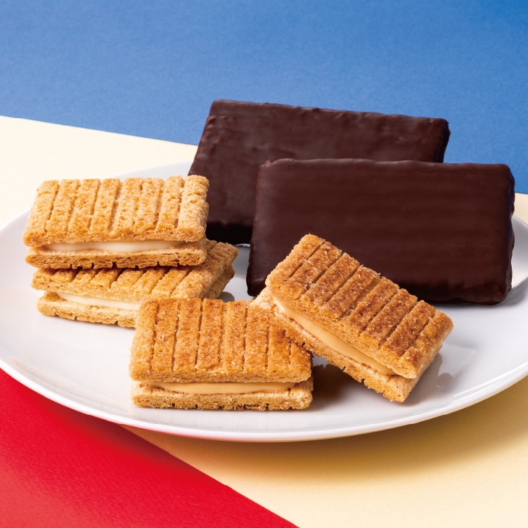 キャラメルブリュレ国産生乳のキャラメルパウダーを練り込んだ特製キャラメルショコラを、パリッとブリュレ仕立てのバターキャラメル生地でサンドしました。サクッとかじると、口いっぱいにキャラメルのコクと香ばしさが広がります。
