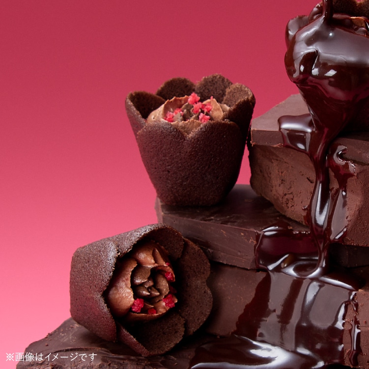 ショコラなのにほんのり天然ローズの香るエクアドル産カカオを、個性豊かな「3種の生食感ショコラバタークリーム」に仕立てました。コク・キレ・濃密、ひとくちごとに新しいおいしさがとろけます。今だけの「ショコラフルコース」を楽しんで!