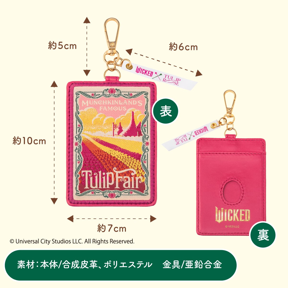 チューリップローズ〈WICKED〉パスケース映画『ウィキッド 永遠の約束』の舞台の一部であるマンチキンランドに広がるチューリップ畑を華やかに描いたパスケースです。鮮やかなピンク色は、使う度に気持ちが明るくなります。毎日使う定期券や、社員証などを入れるのに便利! -
