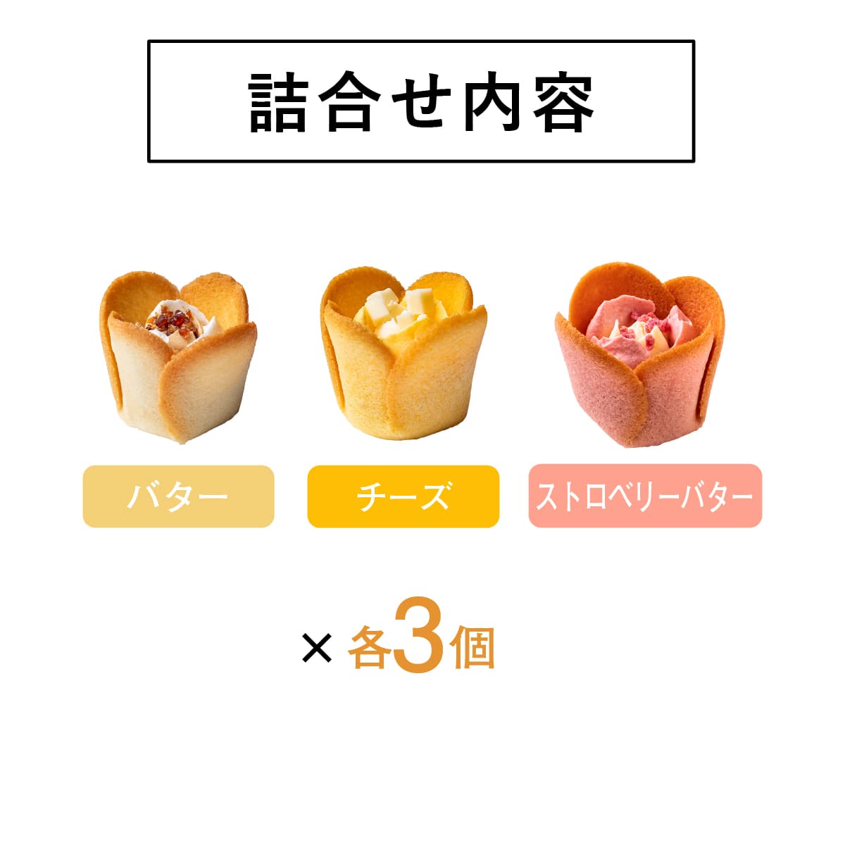 | 内容 | チューリップローズ/バター・チーズ・ストロベリーバター 各3個 |