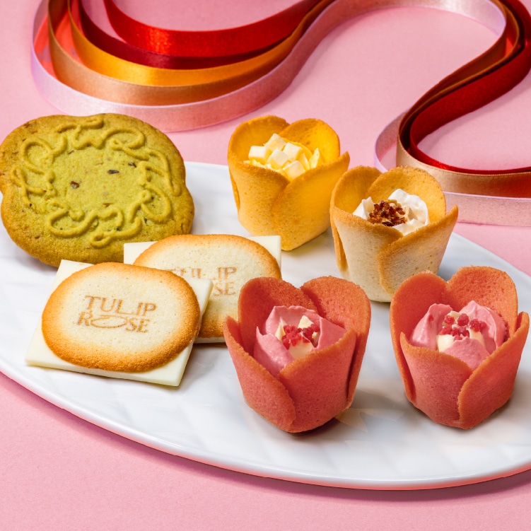 | 内容 | ●チューリップローズ/バター・チーズ 各2個 ●チューリップローズ ストロベリーバター 4個 ●グランチーズショコラサンド 6枚 ●ピスタチオバターサブレ 4個 |