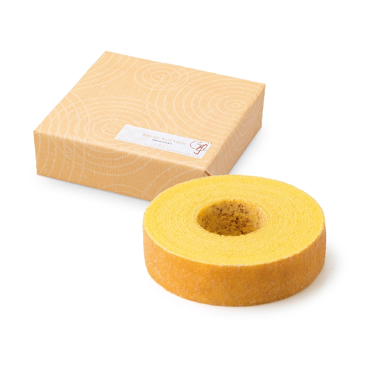 1箱/1個入ふっくらで、ジューシー。バームクーヘンのカステラと称される逸品。日本の味覚にふさわしいやわらかさを求めて、たっぷり卵でカステラのようにふっくらと且つジューシーに焼きあげました。単品購入はこちら