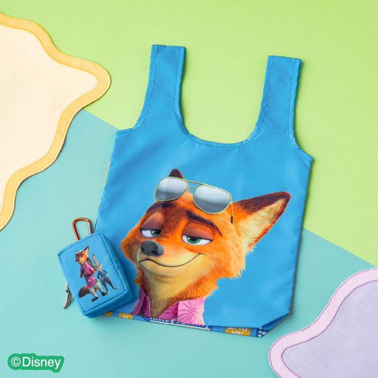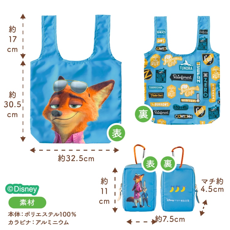 カラビナポーチ付!「ニック」と「ジュディ」が描かれたカラビナポーチ付!エコバッグを入れて持ち運べます。