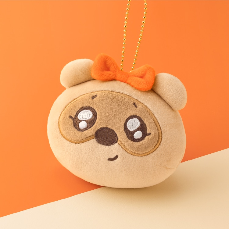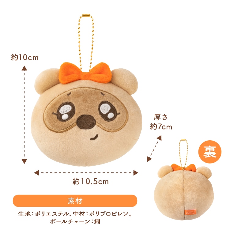 きゅるんとおめめがキュートふわふわフェイスマスコットかわいいタヌキになることを夢みてお腹をぽんぽこならしたら、きゅるんとおめめのふわふわフェイスに大変身!ぽんちゃめと一緒にお出かけしたら毎日ハッピーに楽しめそう♪