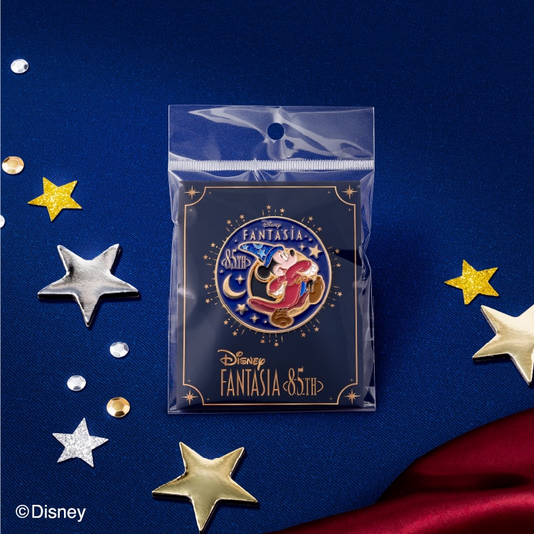 ディズニー映画『ファンタジア』公開85周年を記念した、特製のピンバッジ。きらきらの帽子が、『ファンタジア』の世界観を盛り上げます。