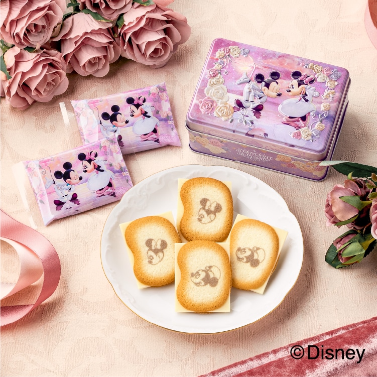 紳士的な「ミッキーマウス」と、うっとりとした表情の「ミニーマウス」が描かれた個包装も、ロマンティックな雰囲気で素敵。「スターライトセレナーデ」の美しい世界観を描いています。