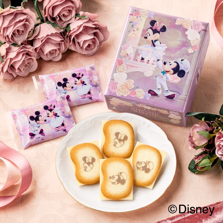 紳士的な「ミッキーマウス」と、うっとりとした表情の「ミニーマウス」が描かれた個包装も、ロマンティックな雰囲気で素敵。「スターライトセレナーデ」の美しい世界観を描いています。