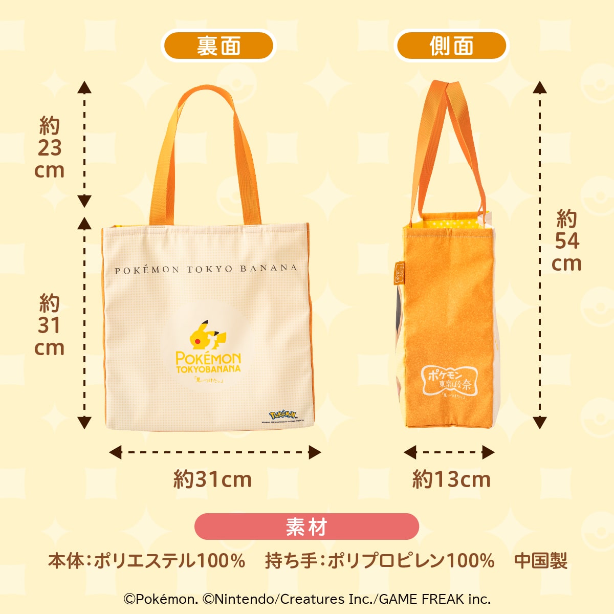 「イーブイ東京ばな奈」のパッケージをイメージしたトートバッグ。たっぷり入って便利な大容量のバッグです。