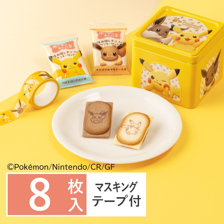 東京ばな奈ワールド ポケモン東京ばな奈 はみ出しチョコのクッキーサンド スペシャル缶(ピカチュウ&イーブイ) 8枚入