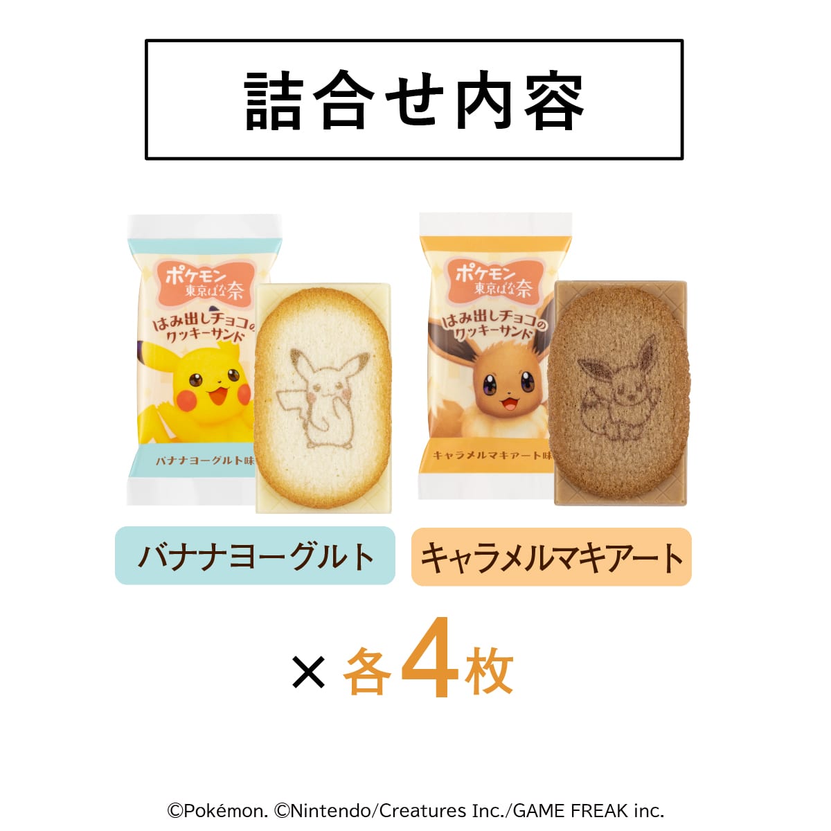 | 商品名 | ポケモン東京ばな奈 はみ出しチョコのクッキーサンド【バナナヨーグルト味】 |