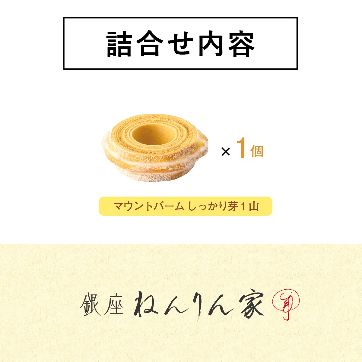 | お菓子の大きさ | 【マウントバーム しっかり芽 1山】直径約14cm×厚さ4cm【ひとくちストレートバーム やわらか芽】約8.5×4×2cm【ひとくちマウントバーム ブラウニー】約8×4.5×2.5cm【ひとくちマウントバーム〈ゴールドショコラ〉】約8×4.8×2.7cm |