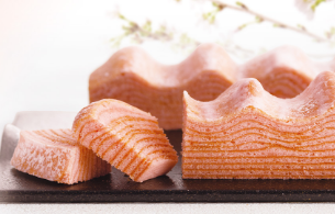 苺の香り華やかな春色のバームクーヘン。