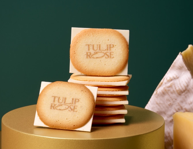 おいしさと美しさを両立させる製法ランドグシャクッキーをわずか7秒でチューリップへと形作る独自の製法や、なめらかな口どけのままバラの形にクリームを絞る精巧な技術から生まれる美しさが、おいしさをより一層引き立てます。