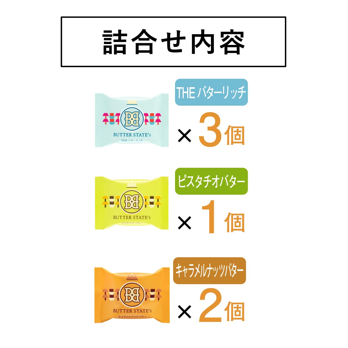 | 内容 | ●バターステイツクッキー ショコラバター 3個入×1袋 ●バターステイツクッキー/THEバターリッチ 3個 ピスタチオバター 1個 キャラメルナッツバター 2個 ●蜜芋バターホイップサンド 4個 |