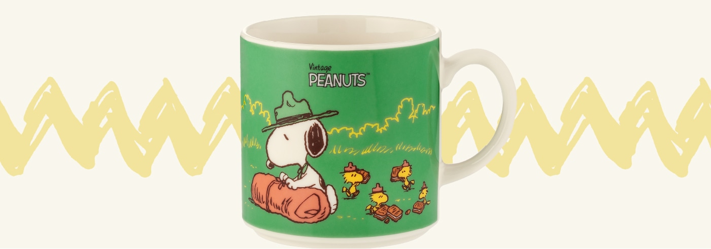 ポップなデザイングリーンを基調とした、PEANUTSの世界観にぴったりなアメリカンな雰囲気のオリジナルマグカップ。お気に入りのドリンクをいれて、ゆっくりと楽しんでくださいね。