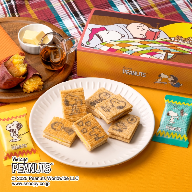 内容 | ●スヌーピー シュガーバターサンドの木 6個 ●スヌーピー シュガーバターサンドの木 蜜いもメープルバター仕立て 6個 |