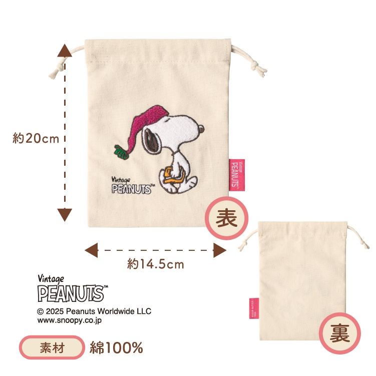 オリジナル巾着コラボだけの巾着ポーチちょっとした小物をまとめるのに便利な巾着ポーチ。ふっくらサガラ刺繍がかわいい!