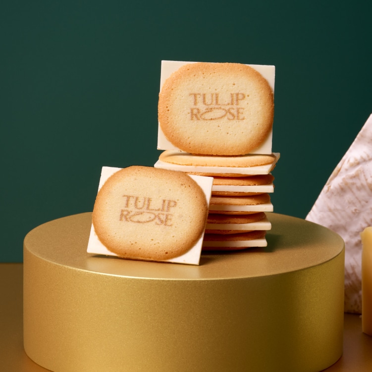 チーズ好きも納得のおいしさカマンベールチーズを使用したラングドシャクッキーで、チェダーチーズを使用したショコラをサンド。程よい塩味が効いた、チーズ好きも納得のおいしさです。