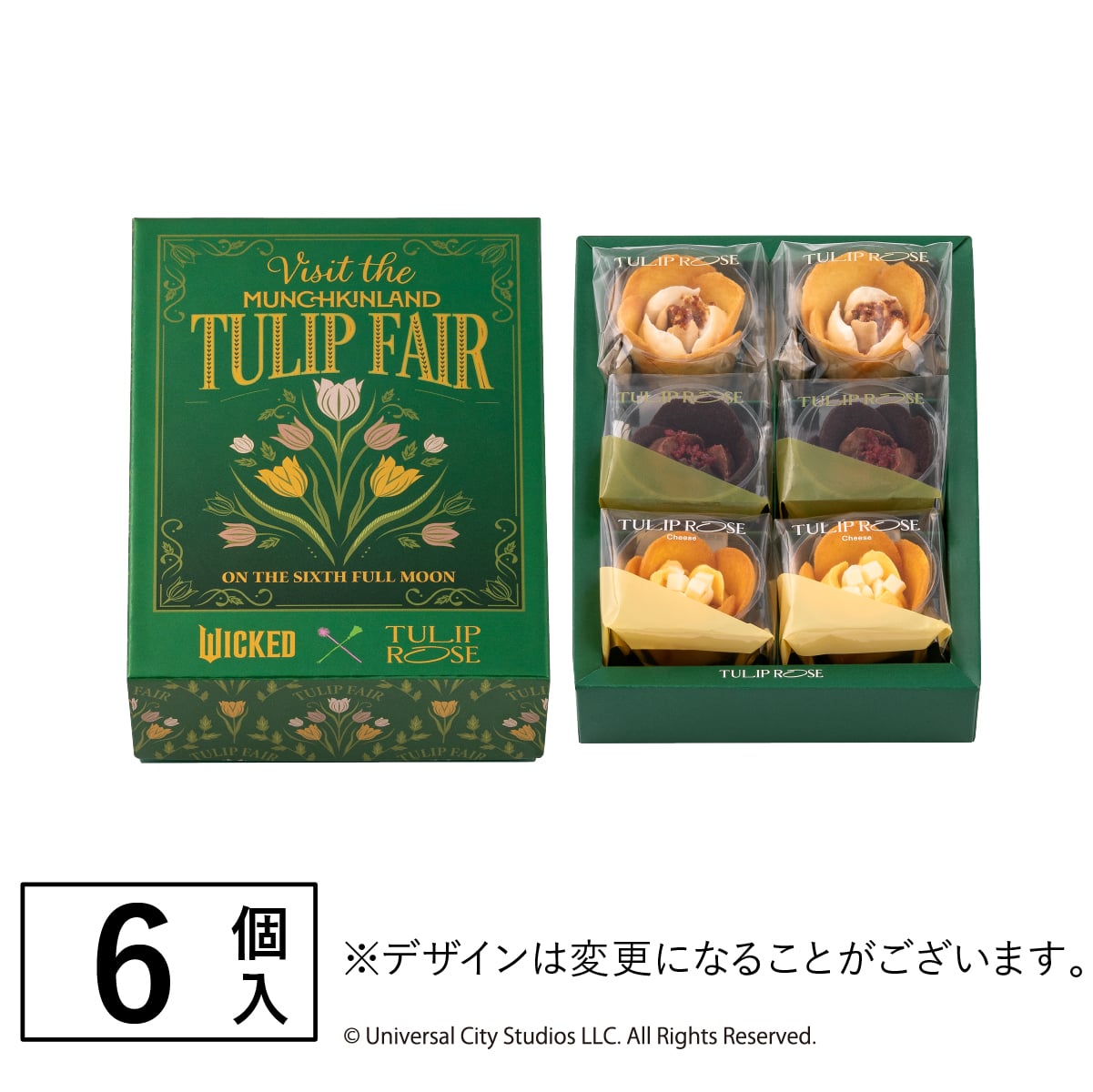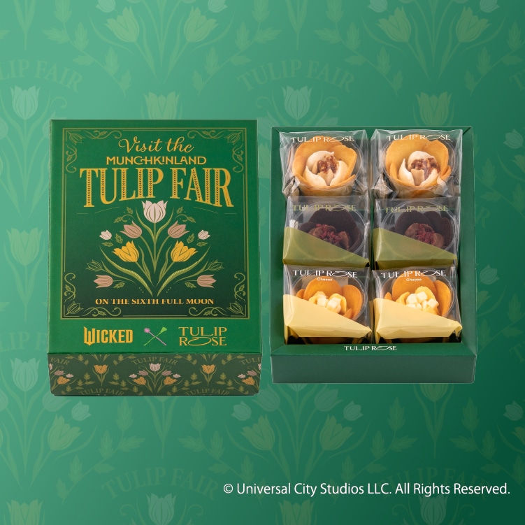 「TOKYOチューリップローズ」のブランドカラーと、映画『ウィキッド 永遠の約束』で共通する“深いグリーン”が印象的なスペシャルボックスに入った詰合せです。ブランド名と同じ称号を持つ代表作「チューリップローズ」の3味をお楽しみいただけます。
