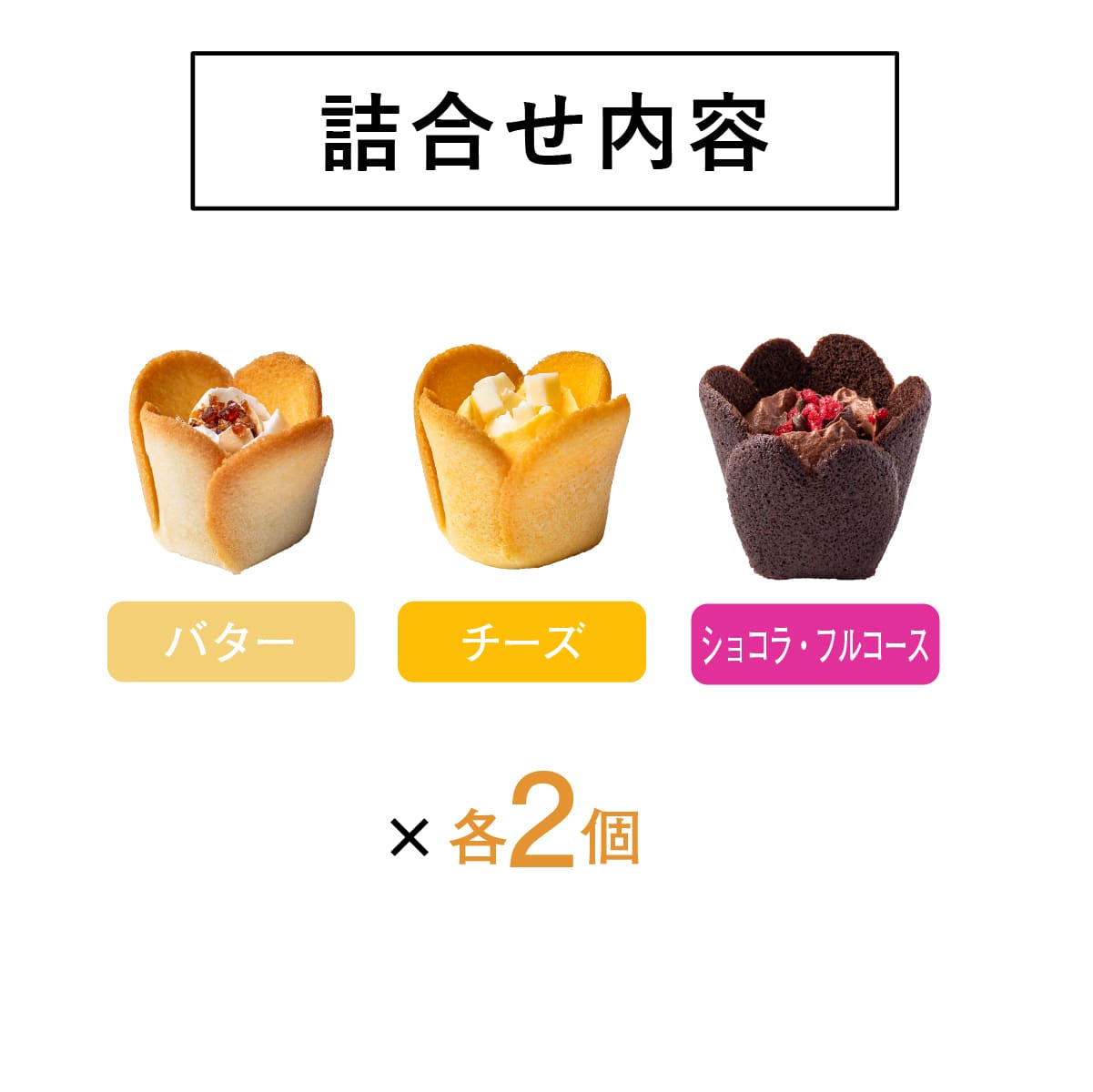 内容 ●チューリップローズ/バター・チーズ 各2個 ●チューリップローズ ショコラ・フルコース 2個