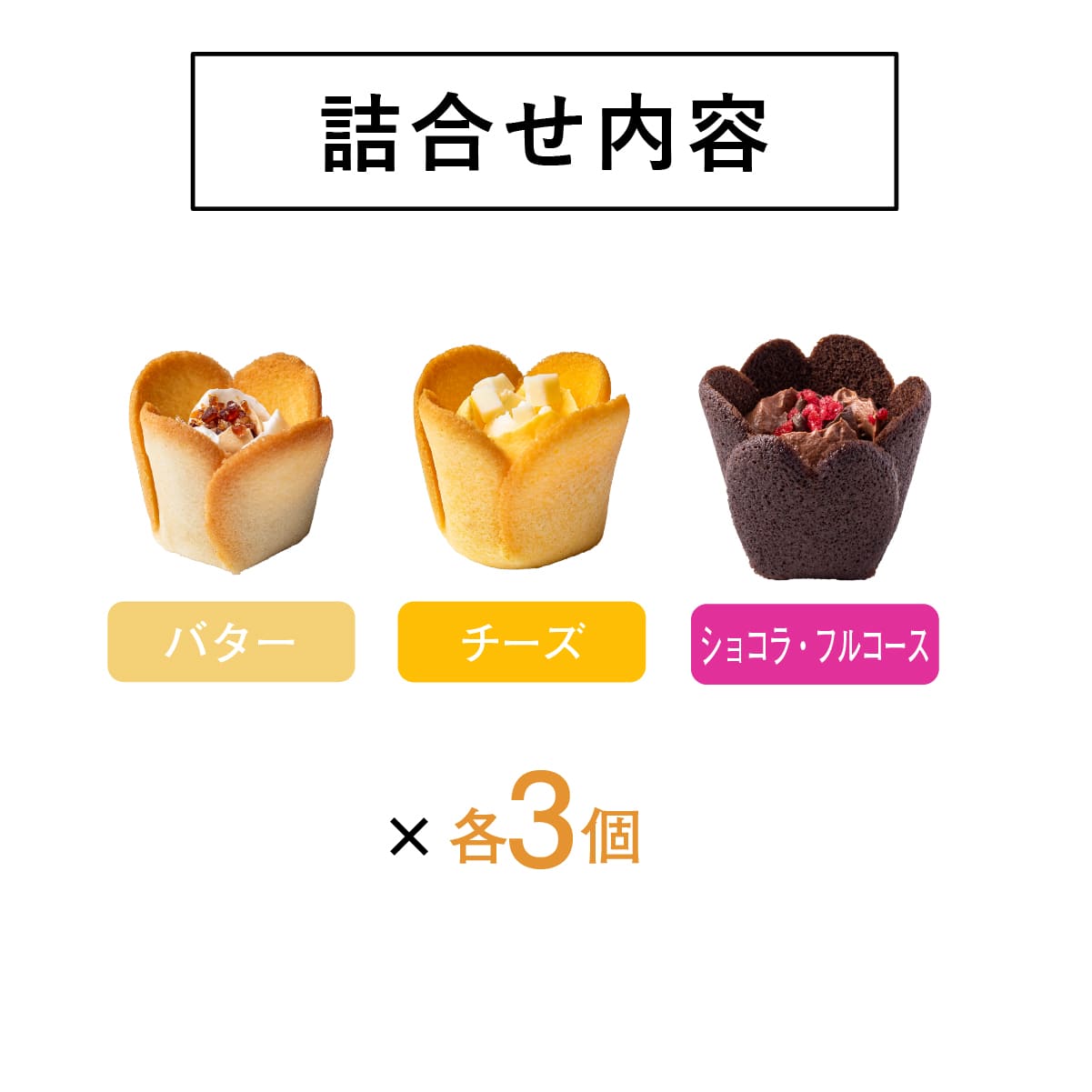| 内容 | ●チューリップローズ/バター・チーズ 各3個 ●チューリップローズ ショコラ・フルコース 3個 |