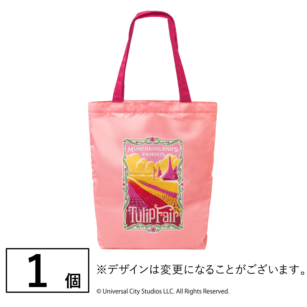 チューリップローズ〈WICKED〉エコバッグ映画『ウィキッド 永遠の約束』の舞台の一部であるマンチキンランドに広がるチューリップ畑を華やかに描いたエコバッグです。鮮やかなピンク色は、持っているだけでおしゃれな印象に。小さく折りたためるので、持ち運びにぴったり! -