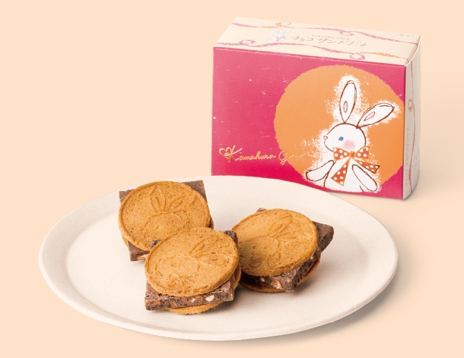 サクサクした食感が魅力のゴーフレット「鎌倉半月」をキャラメル味の満月にして、「ほろにがココアビスケットクランチ」、「アーモンドビスケットクランチ」、粗挽き煎り大豆の「ザクザク大豆クラッシュ」の3つの素材をミックスしたクランチショコラを大胆にサンドしました。