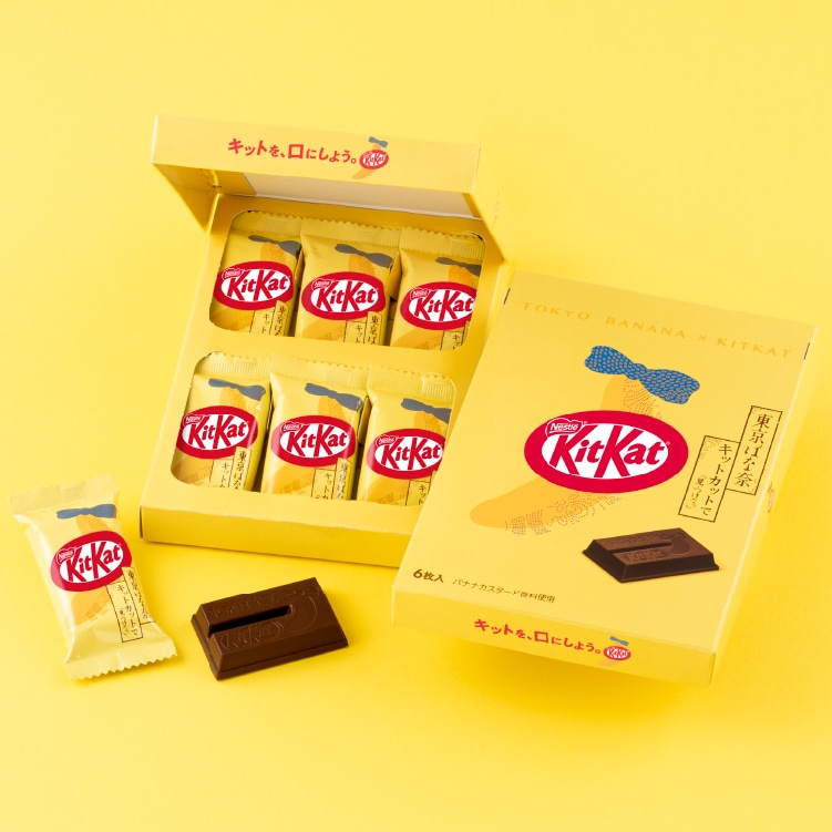 「東京ばな奈」らしいやさしいバナナの味わいを、「キットカット」のチョコレートで包みました。