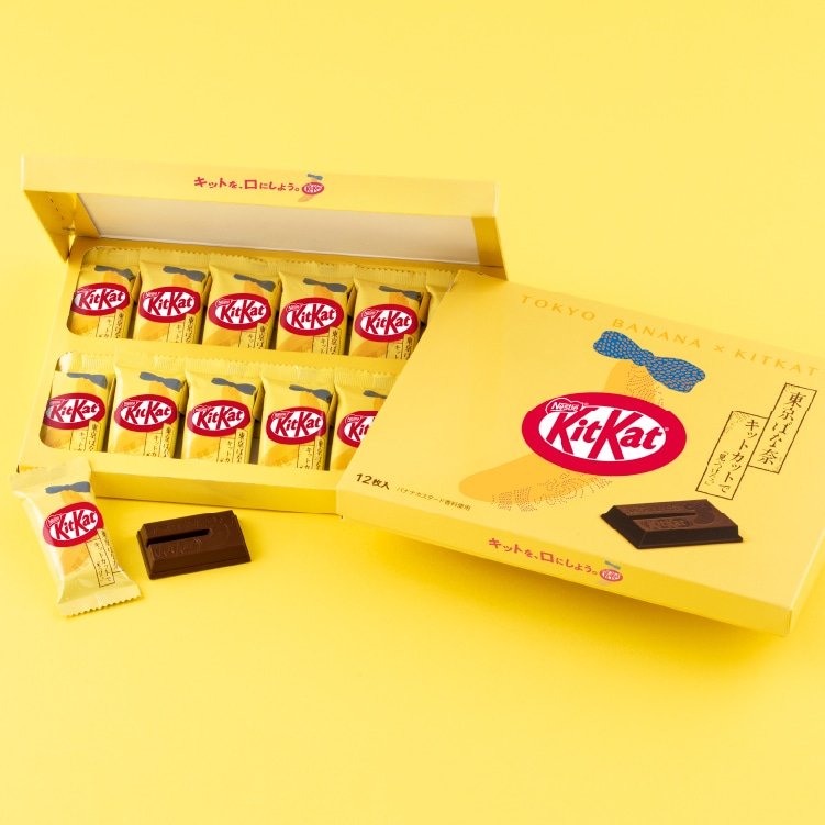 「東京ばな奈」らしいやさしいバナナの味わいを、「キットカット」のチョコレートで包みました。