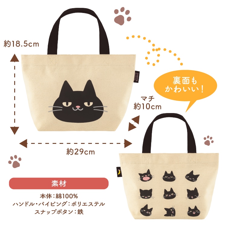 表情豊かなぶにゃんこがデザインされた、キュートなランチトートです