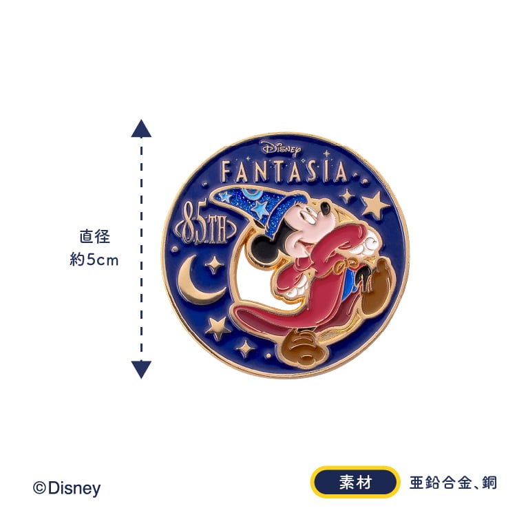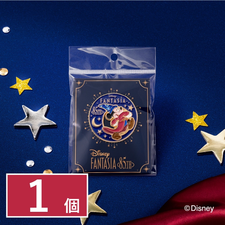 ディズニー映画『ファンタジア』公開85周年を記念した、特製のピンバッジ。きらきらの帽子が、『ファンタジア』の世界観を盛り上げます。