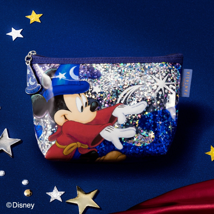 ディズニー映画『ファンタジア』公開85周年を記念した、特製のクリアスパンコールポーチ。使う度にキラキラ輝く星空のようなポーチにうっとり。