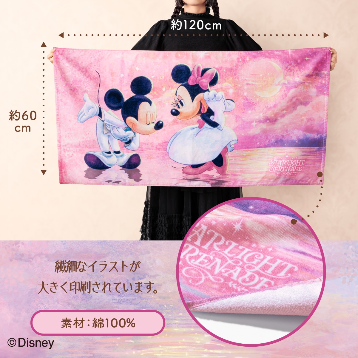 美しいイラストが楽しめる「ミッキーマウス」と「ミニーマウス」のロマンティックなイラストが印刷されたバスタオル。まるで絵画のような美しいイラストをたっぷりとお楽しみください。 -