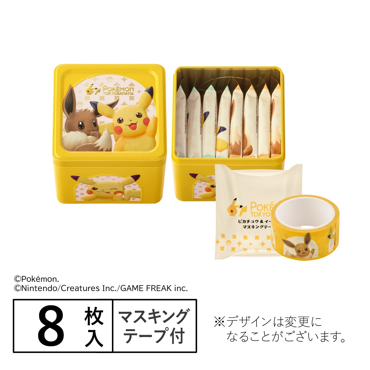 東京ばな奈ワールド ポケモン東京ばな奈 はみ出しチョコのクッキーサンド スペシャル缶(ピカチュウ&イーブイ) 8枚入
