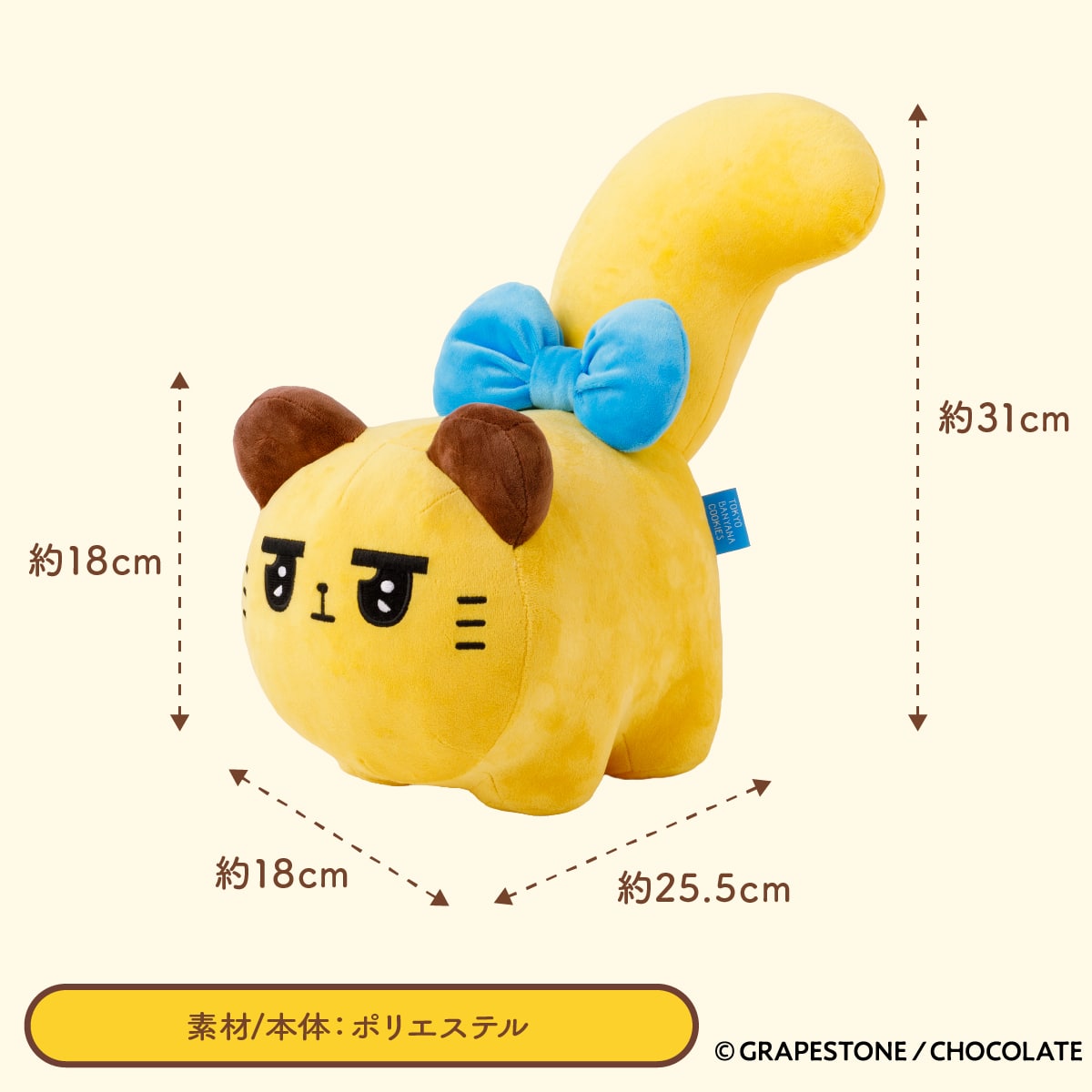 失敗しても、決してめげない。そんな「ばにゃ奈」が大きなぬいぐるみになりました。東京ばな奈みたいなまんまるふかふかボディに、もっちりとした大きなしっぽがチャームポイント。ぎゅっと抱きしめてほっと一息つきませんか。