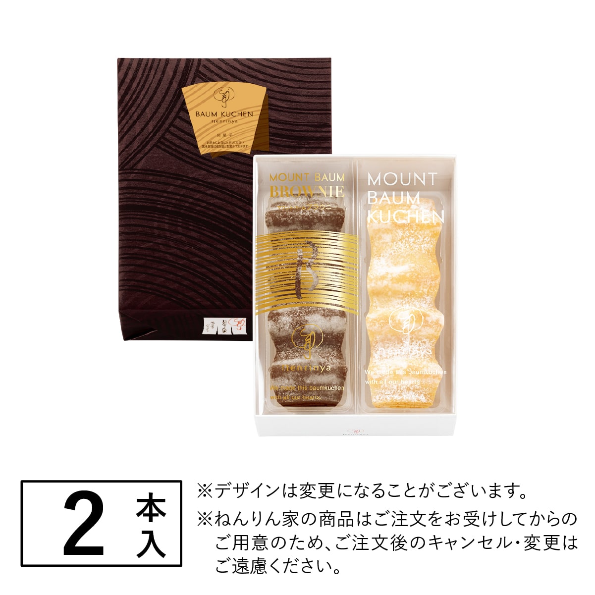 ねんりん家を代表する定番のバームクーヘンと、冬の名物「マウントバーム ブラウニー」を合わせたこの時季だけの詰合せ。定番も季節味もお楽しみいただける詰合せは、冬の贈り物としてもおすすめです。