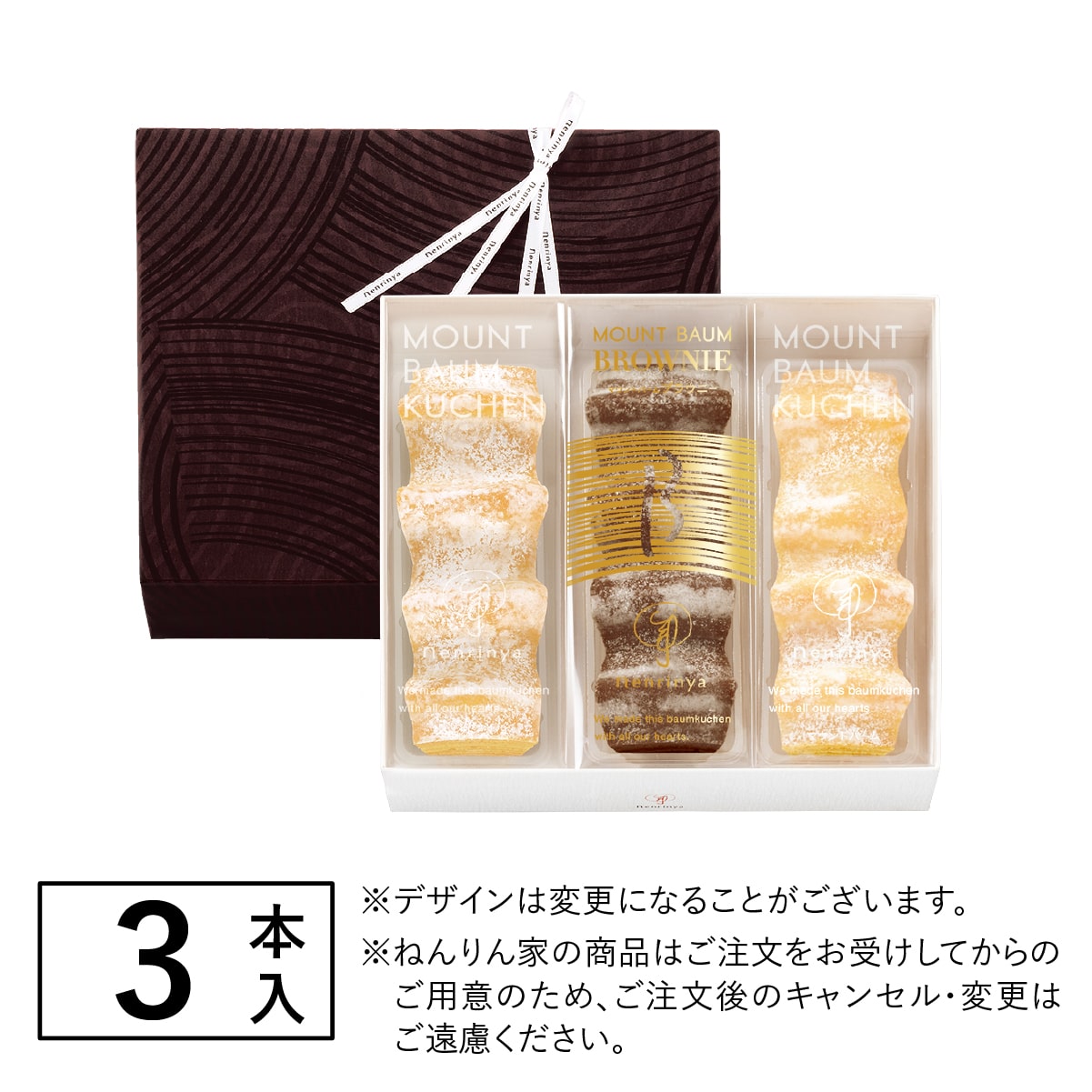 ねんりん家を代表する定番のバームクーヘンと、冬の名物「マウントバーム ブラウニー」を合わせたこの時季だけの詰合せ。定番も季節味もお楽しみいただける詰合せは、冬の贈り物としてもおすすめです。