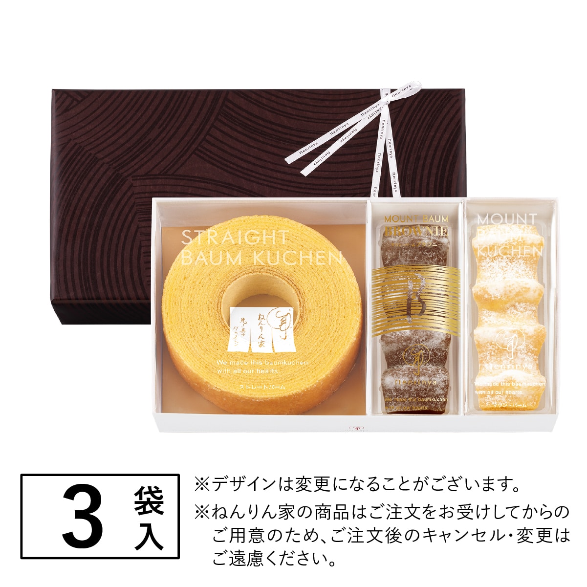 ねんりん家を代表する定番のバームクーヘンと、冬の名物「マウントバーム ブラウニー」を合わせたこの時季だけの詰合せ。定番も季節味もお楽しみいただける詰合せは、冬の贈り物としてもおすすめです。