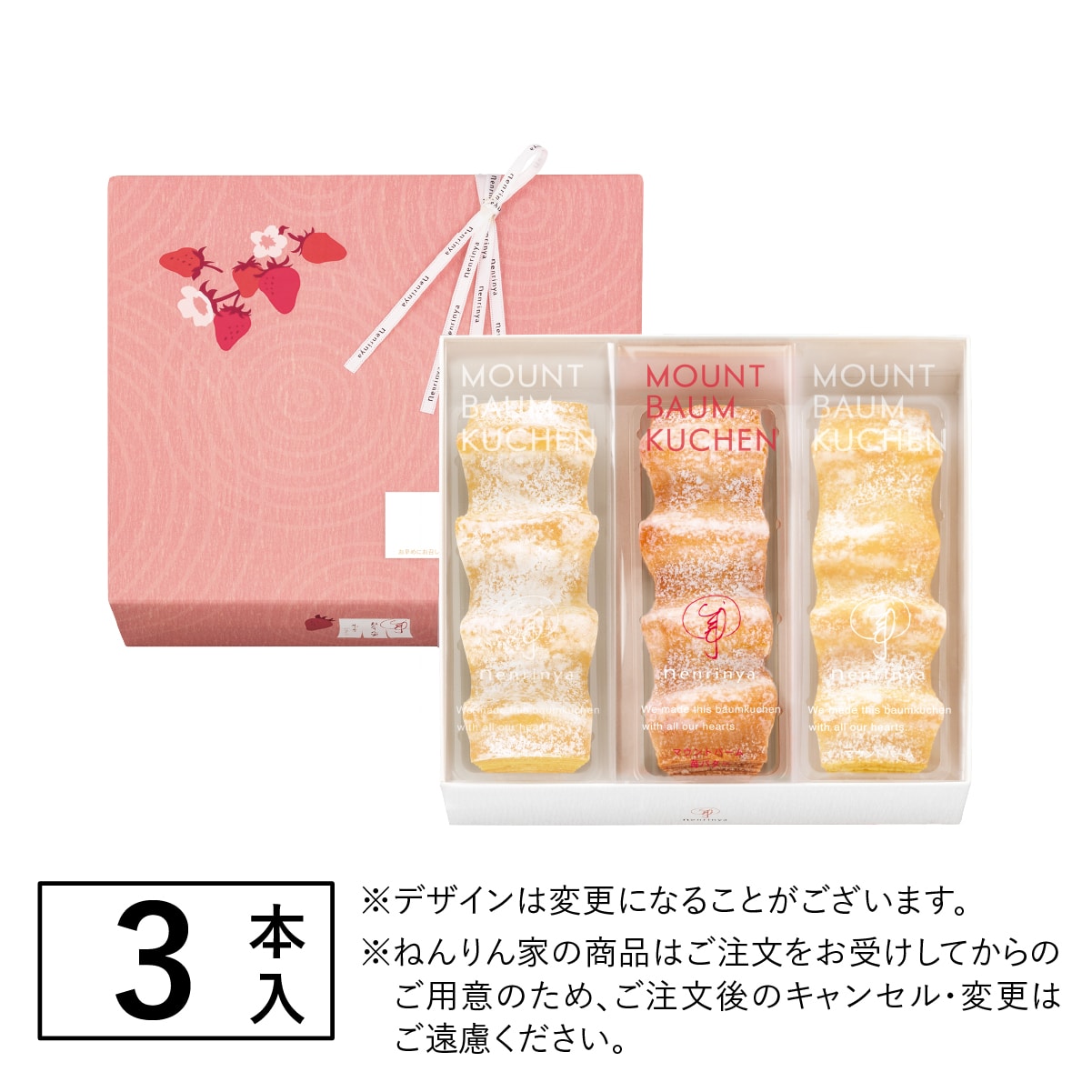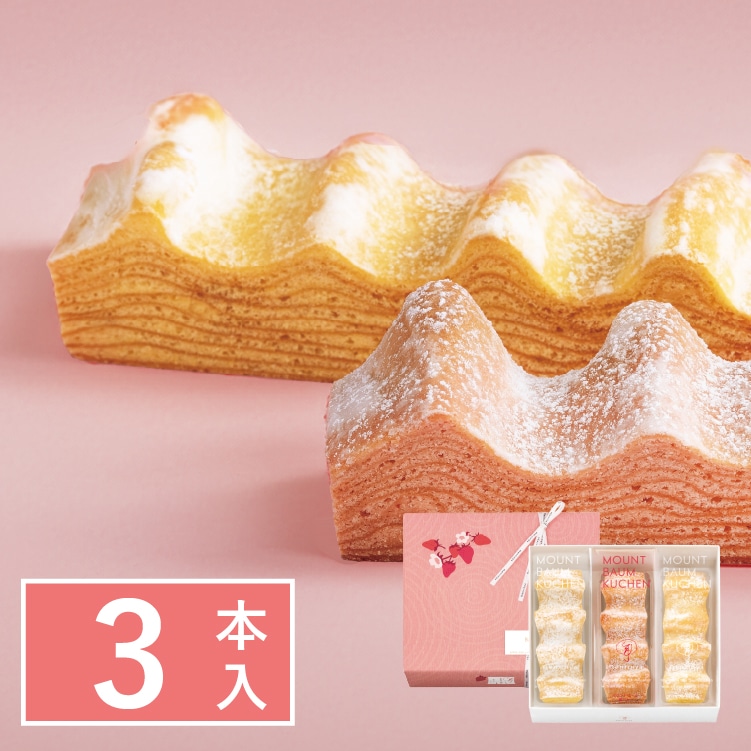 ねんりん家を代表する定番のバームクーヘンと、春の新作「マウントバーム 苺バター」を合わせたこの時季だけの詰合せ。定番も季節味もお楽しみいただける詰合せは、春の贈り物としてもおすすめです。