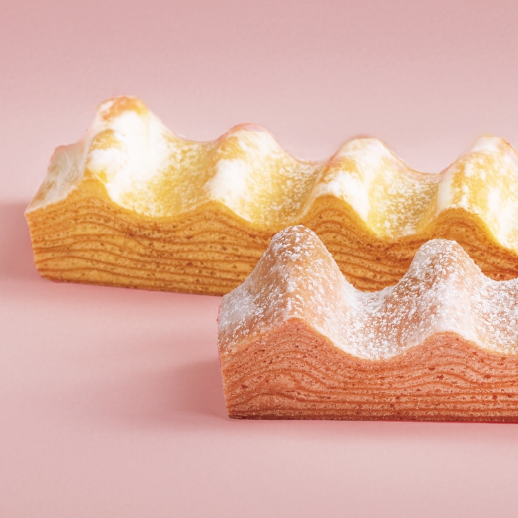 福岡県産あまおう苺のペーストとパウダーを練り込んだ生地を一層一層じっくり丁寧に焼きあげた、春色のバームクーヘン。ホワイトショコラをブレンドし、コク豊かでミルキーな味わいに。華やかな苺と芳醇バターの香りが広がる春限定の味をお楽しみください。