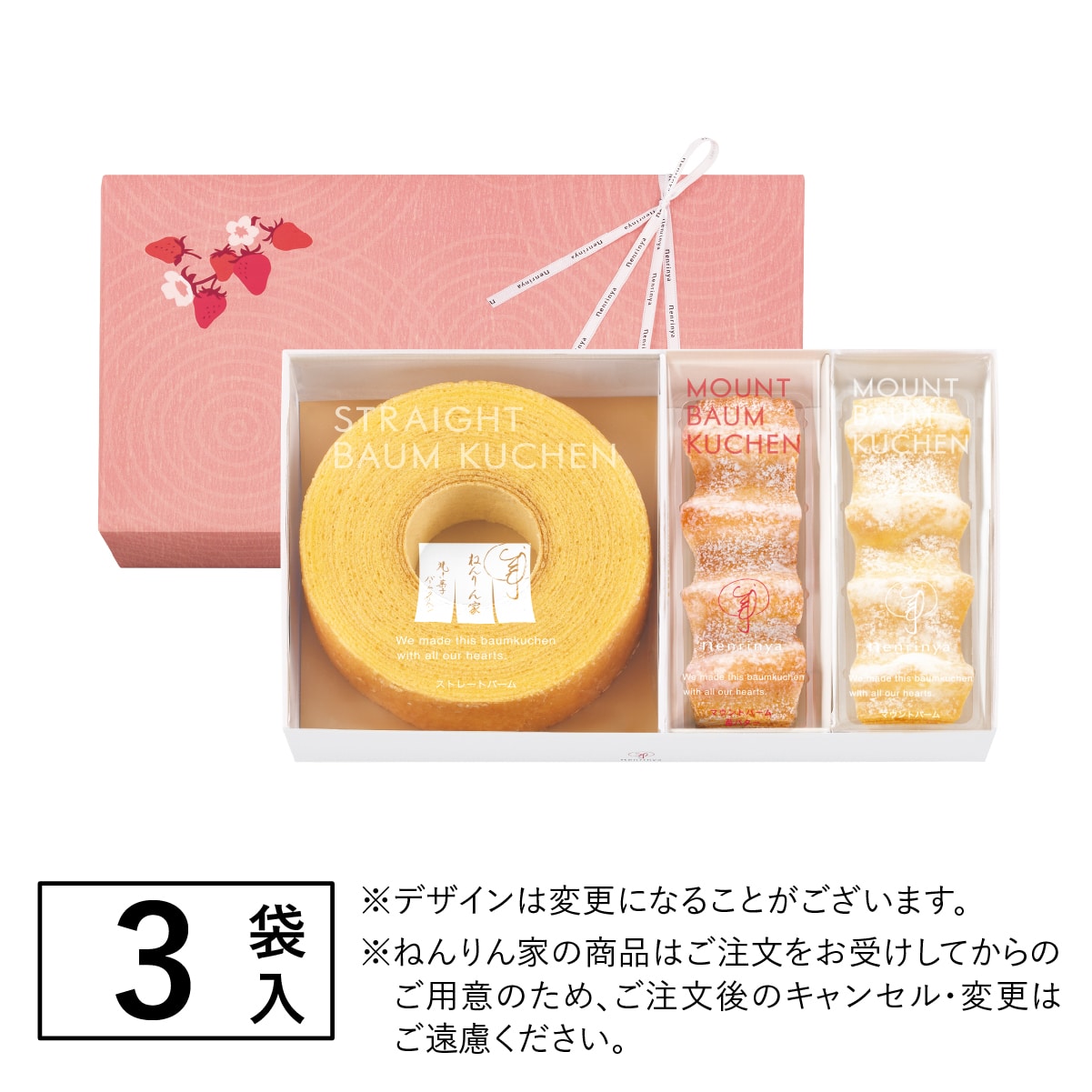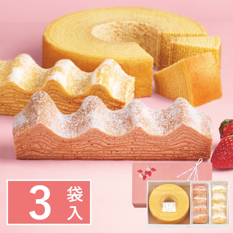 ねんりん家を代表する定番のバームクーヘンと、春の新作「マウントバーム 苺バター」を合わせたこの時季だけの詰合せ。定番も季節味もお楽しみいただける詰合せは、春の贈り物としてもおすすめです。